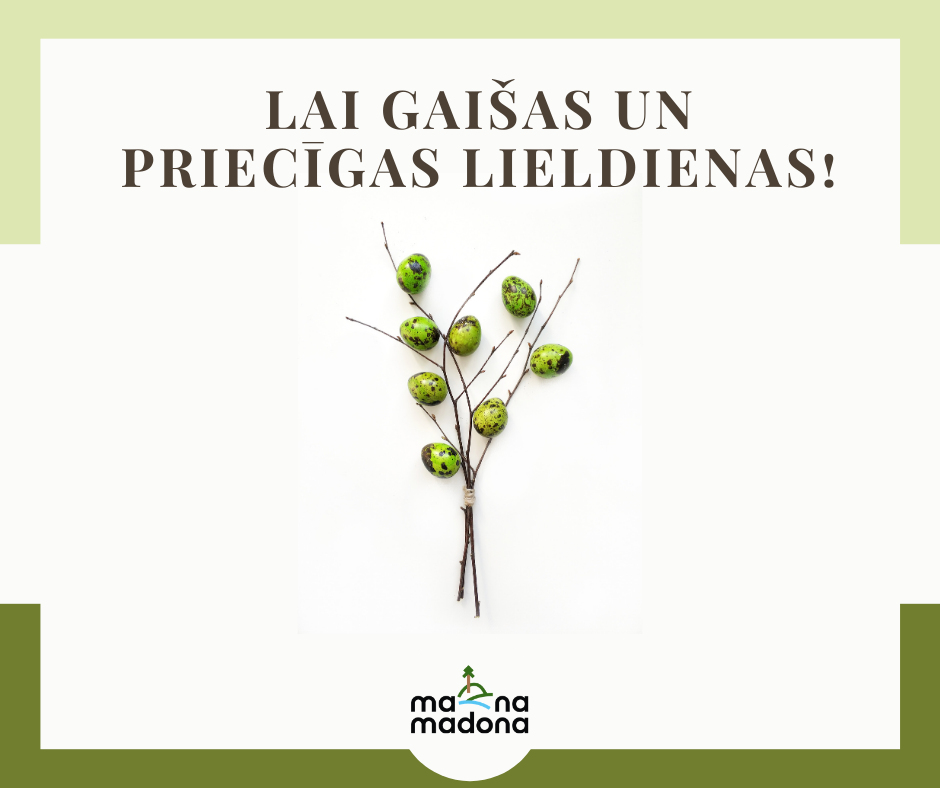 Lai šajos svētkos daudz gaišu un labestīgu domu, kas rosina jauniem darbiem un sasniegumiem! Priecīgas Lieldienas!