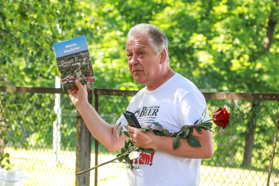 Madonas novada pašvaldības domes priekšsēdētājs Agris Lungevičs pateicās ikvienam, kas veltot laiku, pūles, sirdi un dvēseli, ir palīdzējis grāmatai “Mana Madona” no idejas kļūt par īstenību.