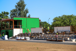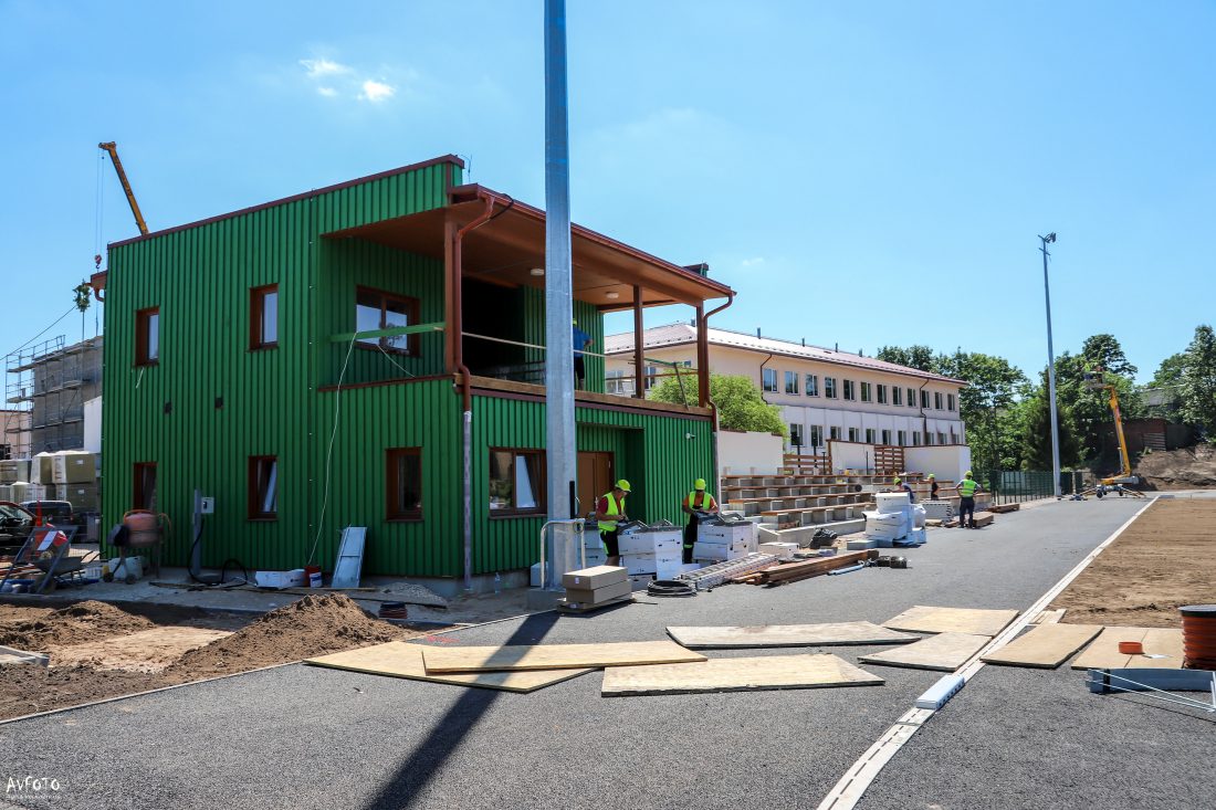 Madonas pilsētas vidusskolā būvdarbi turpinās arī 3. kārtā “Skolas I mācību korpusa un savienojošo gaiteņu atjaunošanas” un 6. kārtā “Stadiona pārbūve un teritorijas labiekārtošana. Tribīnes.”