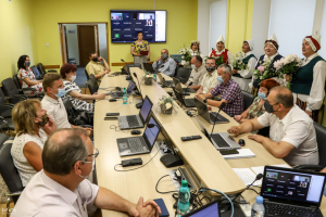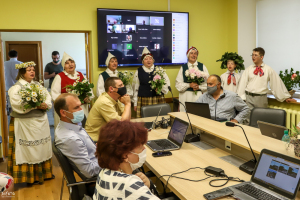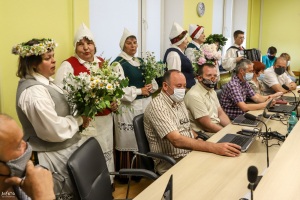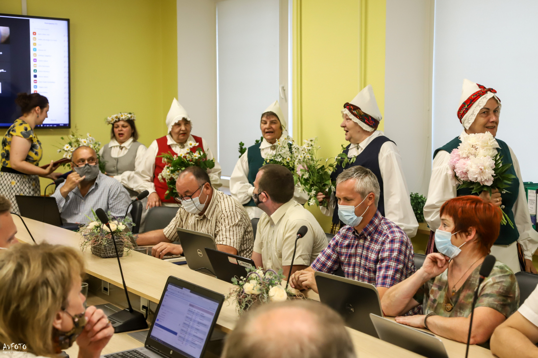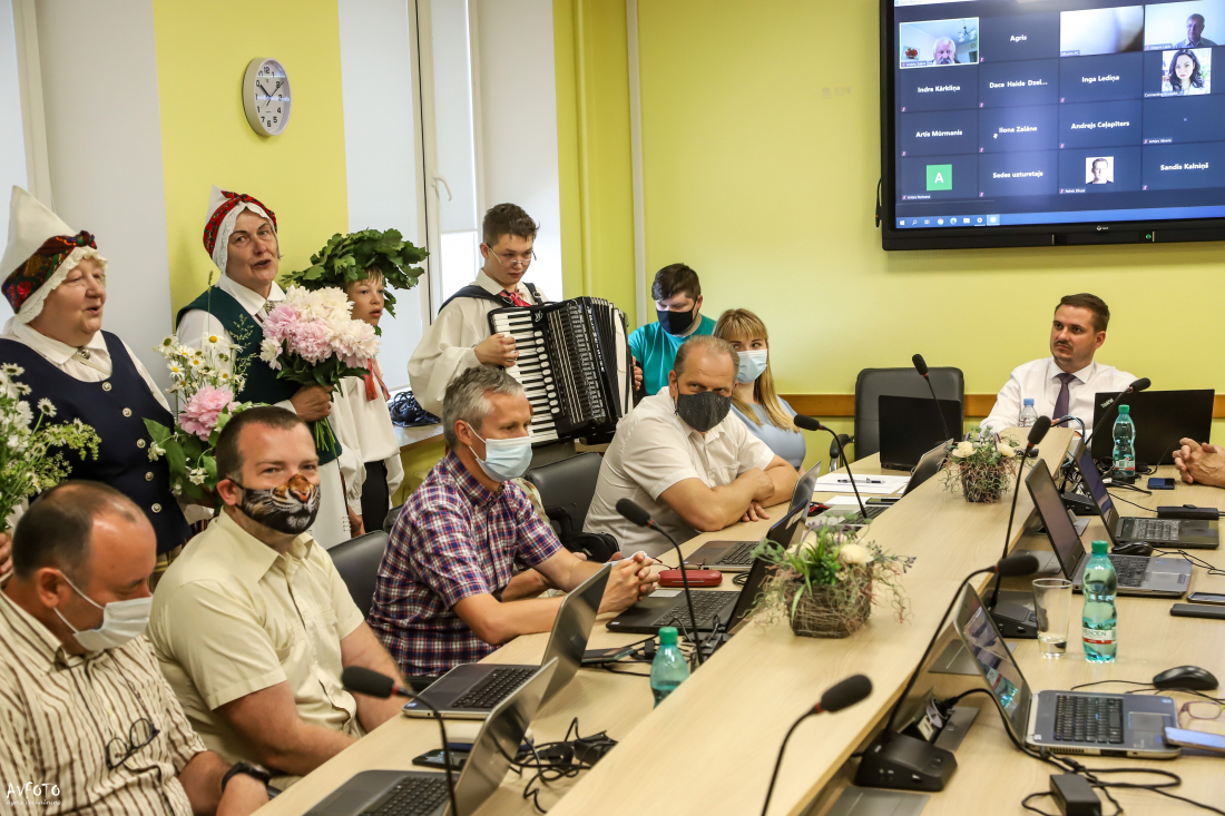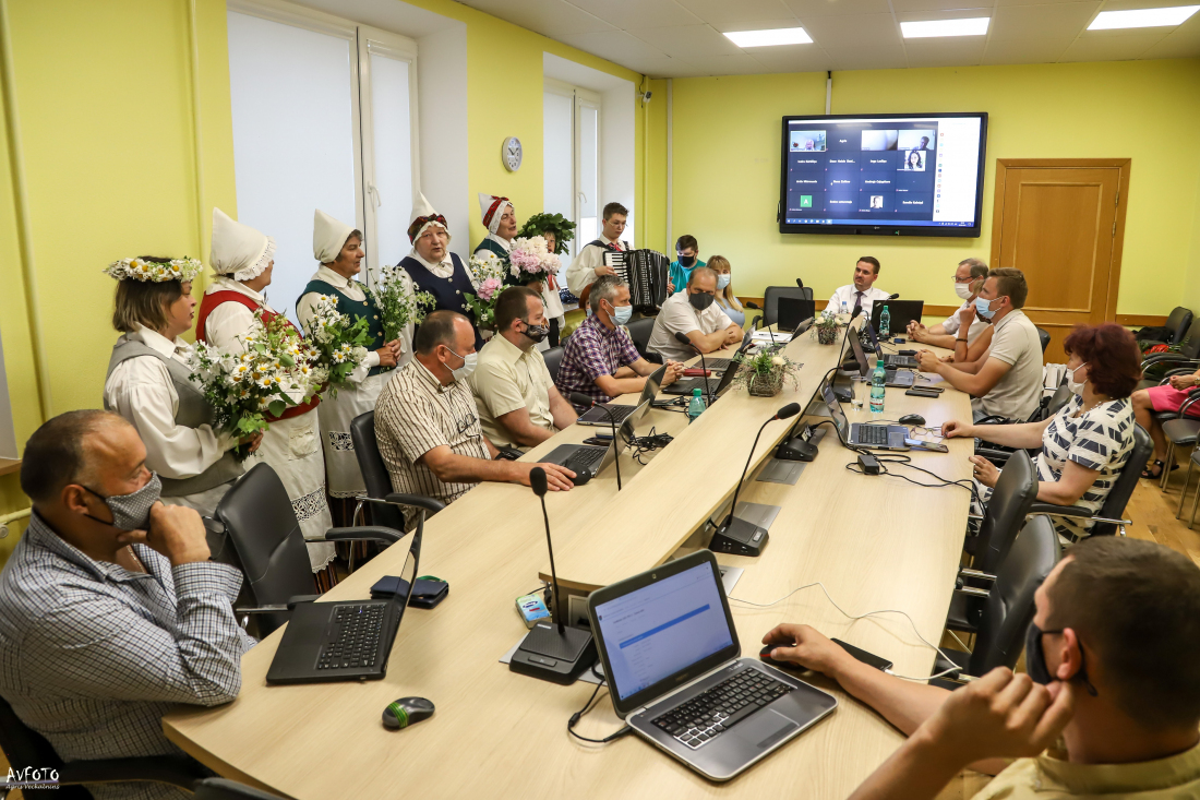 Pēc ilgāka laika posma deputāti (tiesa, ne visi) beidzot varēja tikties klātienē. Pirms ķerties pie 30 sēdes darba kārtībā iekļauto jautājumu izskatīšanas, deputātiem pārsteiguma sveicienu sarūpēja Barkavas pagasta folkloras kopa "Madava", kas ar lustīgām dziesmām sēdē ienesa svētku gaisotni. Domes priekšsēdētājam Agrim Lungevičam arī nācās "aklajā testā" noteikt Jāņu siera sastāvdaļas.