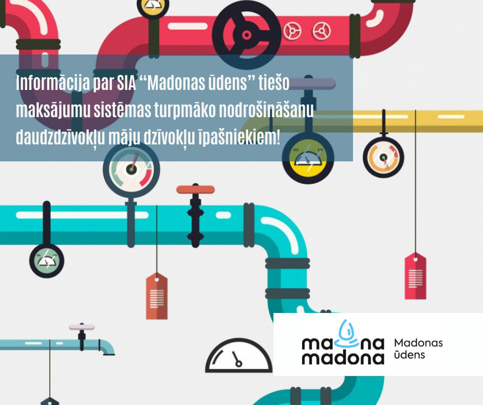 SIA “Madonas ūdens” informē, ja līdz 2021.gada 1.novembrim netiks saņemts daudzdzīvokļu dzīvojamās mājas kopības lēmums par turpmāko norēķinu par sabiedriskajiem ūdenssaimniecības pakalpojumiem ar pārvaldnieka starpniecību, tad sākot ar 2021.gada 1.novembri dzīvokļa īpašniekam ikmēneša rēķinā tiks ietverts papildus maksājums par tiešo maksājumu nodrošināšanu EUR 0,99 +PVN apmērā.