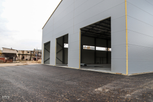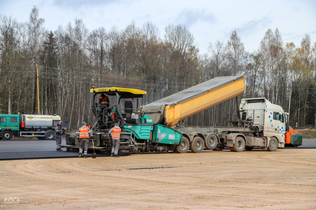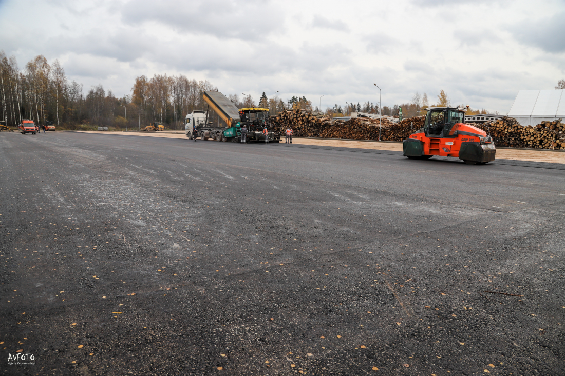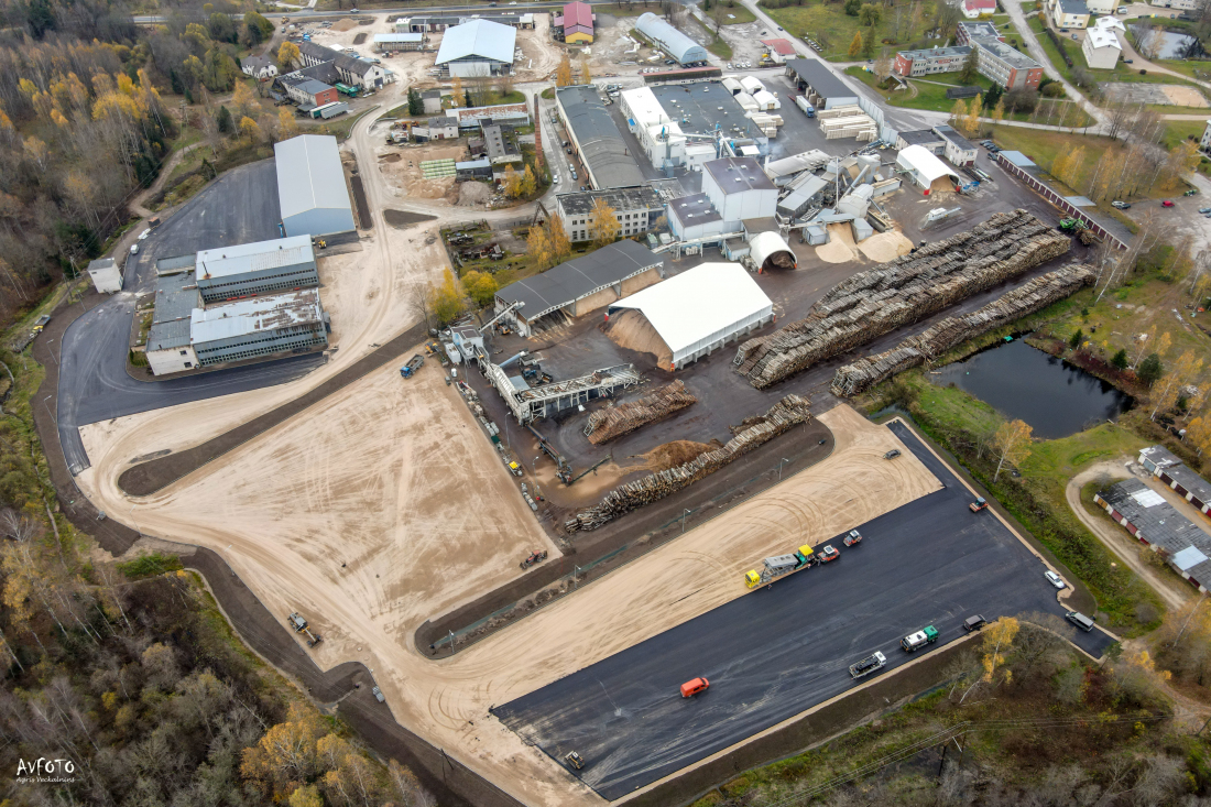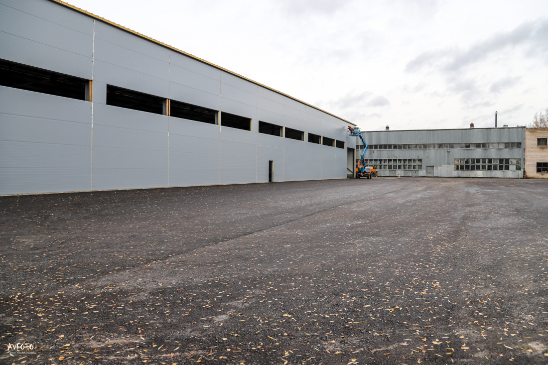 Objektā pabeigti ārējo inženierkomunikāciju izbūves darbi, visā teritorijā izbūvēta laukumu pamata konstrukcija un daļā uzsākti asfaltēšanas darbi. Uzbūvētas abas noliktavas un nojumes ēkas, kurām tiek veikti iekšdarbi.