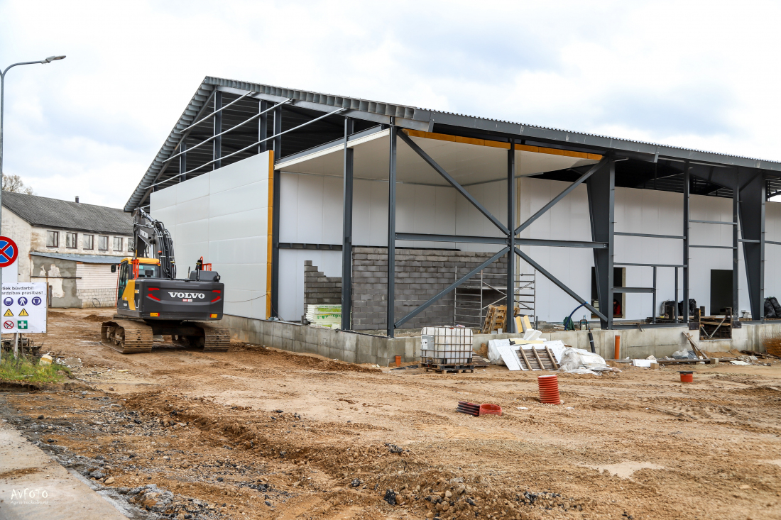 Objektā ir veikti jumta pārbūves darbi, turpinās inženierkomunikāciju izbūves darbi un aktīvi notiek ēkas iekšdarbi.