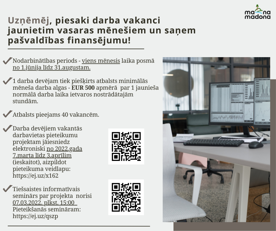 Darba devēj, ja Tev ir neskaidrības un jautājumi par pieteikšanos un/vai projekta norisi š.g. 7.martā plkst. 15:00 paredzēts tiešsaistes informatīvais seminārs. Pieteikšanās semināram, aizpildot elektronisko veidlapu: https://ej.uz/qszp.