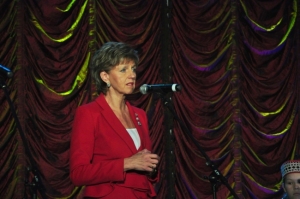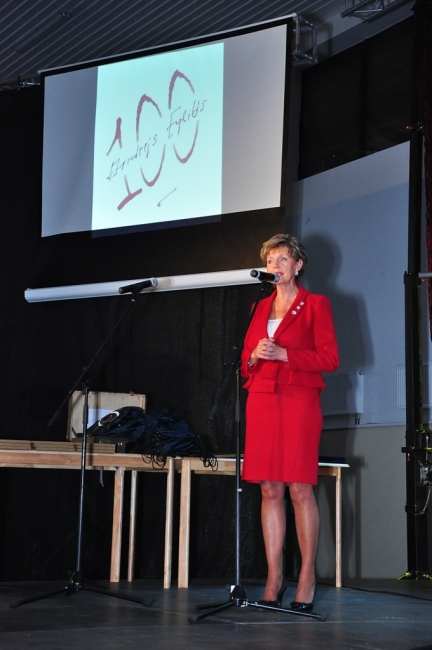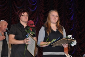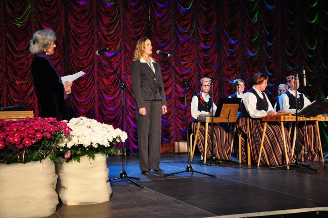 Konkursa laureātus sveica Eiroparlamenta deputāte Inese Vaidere un Andreja Eglīša Latviešu nacionālā fonda priekšsēdētāja Māra Strautmane.