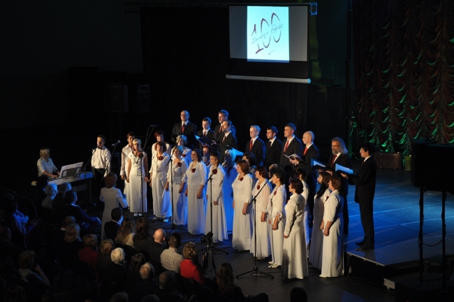 Jubilejas noslēguma pasākums ļaudoniešus un daudzos viesus no dažādiem Latvijas novadiem pulcēja Andreja Eglīša Ļaudonas vidusskolā, kur norisinājās emocionāli spēcīgs un krāšņs uzvedums „Caur daudzām zemju zemēm, caur daudzām debesīm...” . Tā veidotāji - Ļaudonas kultūras nama direktore Signe Smirnova, jaunā un talantīgā režisore Gunta Strode, uzveduma aktieri Kristaps Šķēls un Jānis Plāte, Ļaudonas pagasta jauktais koris „Lai top” ar diriģenti Anitu Melnupu un solistiem Artūru Grandānu, Artūru Biķernieku un koncertmeistari Ilzi Tomsoni – sniedza patiesi saturiski piepildītu un aizkustinošu uzvedumu. Par horeogrāfiju rūpējās Madonas kultūras nama mūsdienu deju grupa „Aliens” un vadītāja Ināra Cakule, tehnisko nodrošinājumu - skatuvi, apskaņošanu un gaismu režiju nodrošināja kompānija „AJV”.