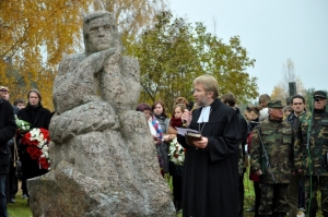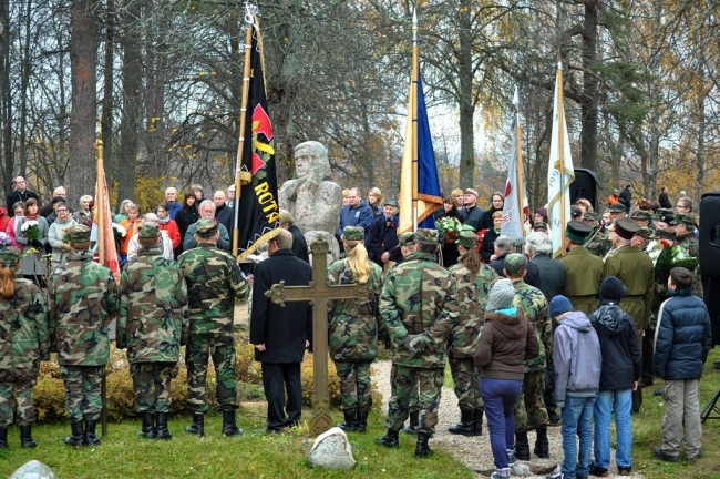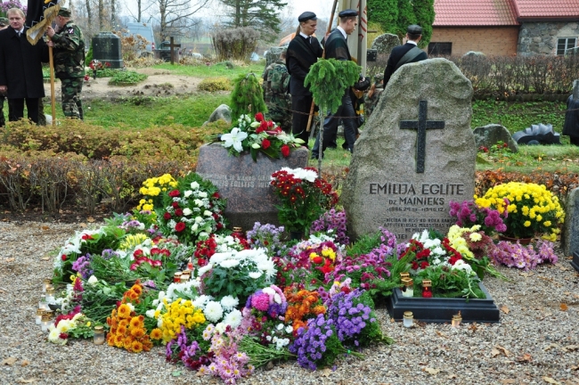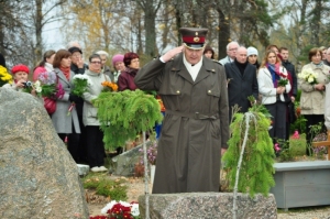 Jubilejas pasākumi turpinājās ar piemiņas brīdi dzejnieka atdusas vietā Ļaudonas kapos,kur klātesošos uzrunāja luterāņu mācītājs Ingus Dāboliņš, Dailes teātra aktieris Jānis Paukštello, aktrise Vera Gribača-Valtere, tēlnieks Indulis Ranka, režisors Zigurds Vidiņš, Andreja Eglīša Latviešu nacionālā fonda pārstāvji, Latvijas armijas virsnieku un zemessardzes apvienības veterāni. Par muzikālo noskaņu rūpējās zemessargu ansamblis „Junda”.