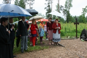 Atklāšanas pasākumā viedus vārdus sacīja un ievētīšanas rituālu veica draudzes mācītājs Guntis Želvis. Vienmēr ieinteresēts kultūras dzīves norisēs ir novadnieks – mūziķis, dzejnieks, mūzikas skolas pedagogs Uldis Deigelis. Muzicēja skolas ansambļa „Draugi”vadītājs Oskars Gailītis. Skolotājas Zanes Imšas vadītais vokālais ansamblis un skolas bērni priecēja ar dvēselisku melodijām. Avansā paldies skolotājai Marutai Gravānei un viņas vadītajiem mazpulcēniem, kas ir apņēmušies rūpēties par piemiņas vietu. Paldies Vidzemes TV un „Staram”, kas šo notikumu uzskatīja par atspoguļošanas vērtu un nenobijās no lietus.