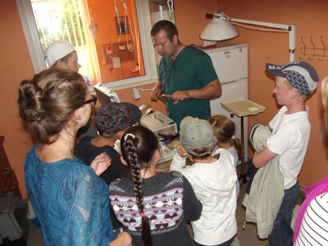 Kā viena no pēdējā laika interesantākajām nodarbībām ārpus „Štābiņa” telpām bija viesošanās Litas un Kaspara Udrasu veterinārajā klīnikā . Bērni ne vien uzzināja daudz jauna par veterinārārsta darbu un pienākumiem, dzīvnieku aprūpi, ārstēšanu, barību un rotaļlietām, klātienē vēroja dzīvnieciņu profilaktisko aprūpi un rūpīgi izpētīja veterinārārsta darbam nepieciešamos medicīniskos instrumentus, bet arī vienojās par kopīgu topošās dzīvnieku patversmes apmeklējumu rudens pusē. Mums pie jums ļoti patika, paldies!