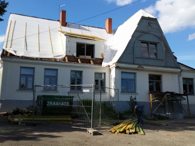 Lietus laikā caur jumta salaiduma vietām tecējis ūdens, bojājot jumta koka konstrukcijas un esošo siltumizolāciju. Renovāciju plānots pabeigt līdz mācību gada sākumam.