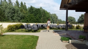 Biedrība "Pie kraujas" ir Madonas novada jauniešu nodibinājums. Biedrības jauniešiem ir pieredze tūrisma maršrutu un pasākumu organizēšanā, bet pats galvenais- degsme strādāt un liela mīlestība pret dabu. Pirmās nedēļas jaunie saimnieki aktīvi darbojas pie informācijas centra teritorijas labiekārtošanas. Tiek pļauta zāle un niedrāji, griezti krūmi, stādītas puķes, spodrinātas telpas, mazgātas grīdas un logi.