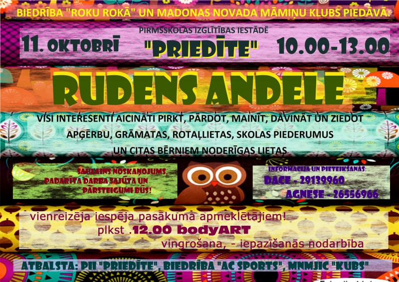 11. oktorbrī no plkst. 10:00-13:00 Madonā, PII "Priedīte" notiks rudens Andele.