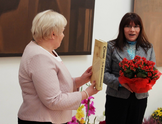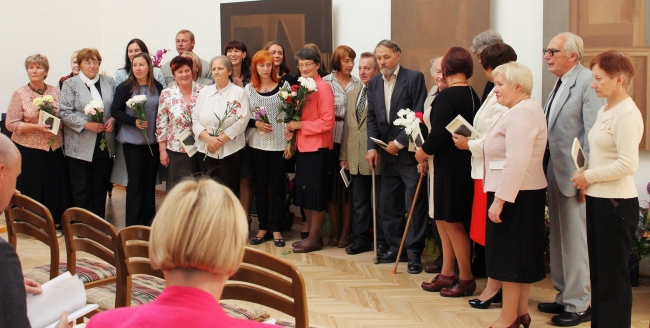 Bija pulcējušies kādreizējie kolēģi, Kultūras ministrijas un kaimiņu muzeju pārstāvji, bija daudz mīļu apsveikumu, ziedu, spontānu dziesmu.