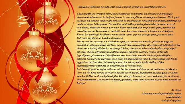 Apsveikums no domes priekšsēdētāja A.Ceļapītera Jaunajā gadā.