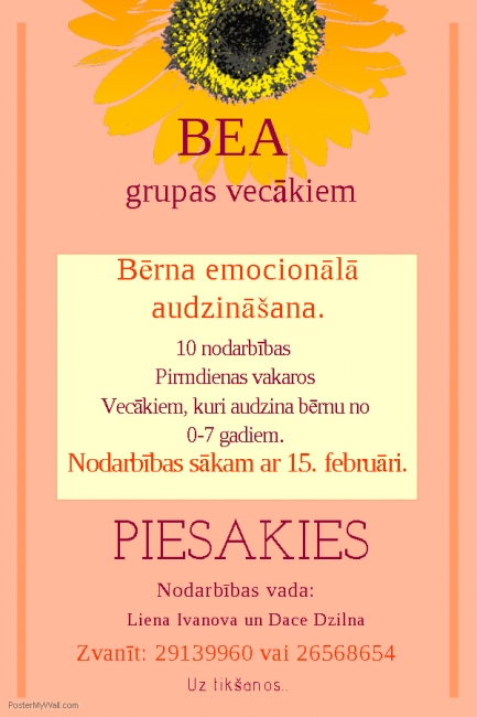 Vairāk informācijas un pieteikšanās, zvanot: 29139960 (Dace) vai 26568654 (Liena).