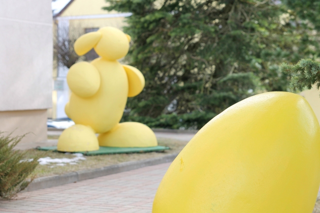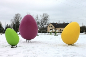 Visas jaunās dekorācijas pamatā veidotas no putuplasta. Tā apstrādē un formu izveidē nepieciešamas īpašas iemaņas, tādēļ darbs tika uzticēts Imantam Spridzānam un Kārlim Bandeniekam. Stilizētā koka ziedošos akcentus palīdzēja sagatavot dārzniece Gita Lutce ar īpašumu uzturēšanas komandu. Laika zobs nebija pasaudzējis Lieldienu olas, kuras pagājušajā gadā rotāja zīmējumi un asociāciju teksti ar svētku laiku. Krāsojums sācis lupt nost, tāpēc uzturēšanas dienestam nācies tās pārkrāsot.