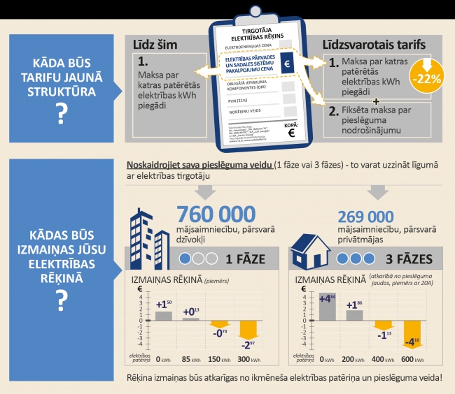 Esošajos sadales tarifos ir ietvertas elektroenerģijas piegādes izmaksas, un turpmāk visiem iedzīvotajiem līdzšinējā pakalpojuma cena par elektroenerģijas sadali veidosies no 2 daļām: nelielas fiksētas ikmēneša maksas par pieslēguma nodrošināšanu un samazinātas cenas par elektroenerģijas piegādi atbilstoši patērētajām kilovatstundām. Lielākai daļai mājsaimniecību kopējais rēķins par elektroenerģiju būtiski nemainīsies, lietotājiem, kas elektroenerģiju patērē efektīvi, gala elektrības rēķins pat samazināsies, savukārt tā sauktajiem „0” pieslēgumiem, kas elektroenerģiju nepatērē, vai neefektīvajiem patērētājiem būs rēķina pieaugums.