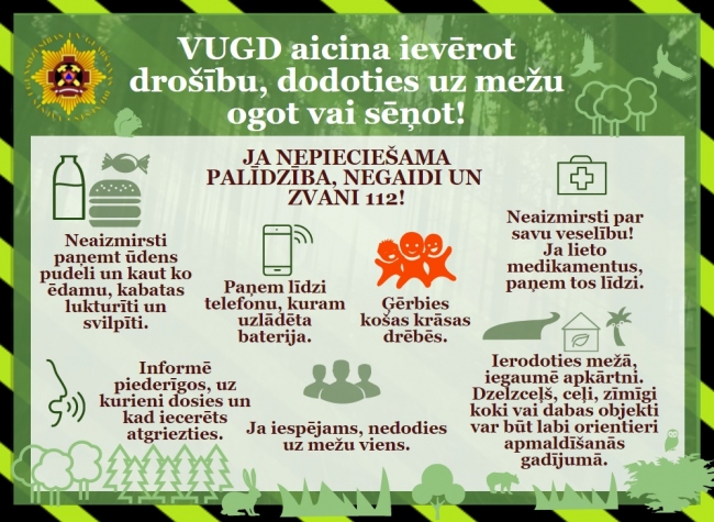 Pirms doties uz mežu, informējiet savus piederīgos par to, kurā vietā plānojat sēņot vai ogot, kā arī laiku, kad plānojat atgriezties. Ja iespējams, nedodieties mežā viens. Ģērbjoties domājiet ne tikai par to, kā pasargāt sevi no ērcēm, bet arī par to, lai glābējiem Jūs būtu pēc iespējas vieglāk ieraudzīt, tāpēc apģērbam un galvassegai izvēlieties spilgtas un košas krāsas. Pirms došanās mežā, pilnībā uzlādējiet sava mobilā tālruņa bateriju.