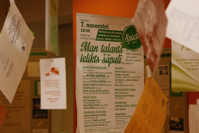 Jubilejas mēnesi ieskandēja izstādes atklāšana Madonas muzejā 9. oktobrī, pulcējot Spieta saimi - dziedošās un muzicējošās ģimenes, kā arī draugus un atbalstītājus. Spieta kustības uzturētāja un izstādes idejas autore Anita Kļaviņa uzsver, ka fotoizstāde veltīta atskatam uz kopā piedzīvoto aizvadītajos gados - te ir gan fotoliecības no koncertiem, notikumiem, svarīgiem mirkļiem, fotogrāfijās mēs varam atcerēties arī pašus Spieta pirmsākumus un ļaudis, kas šo tradīciju iedibinājuši.