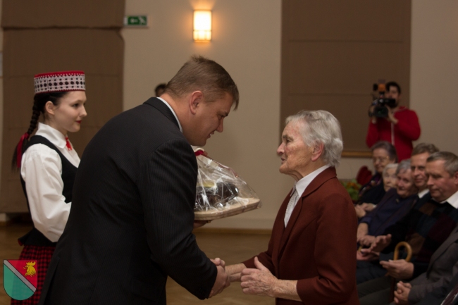 Ar īpaši aizkustinošu brīdi tika sumināti mūsu seniori - Madonas vienaudži. Prieks, ka novada uzņēmēji bija sarūpējuši spēka dāvanu - uz "Latvāņu" galdniecībā speciāli šim nolūkam darinātiem virtuves dēlīšiem savietojās "Madonas maiznieka" svaigi cepts Lāčplēša maizes kukulis, aizdaram - "Lazdonas Piensaimnieka" novada piensaimnieku produkcija, "Jāņkalnu" dzērvenes vitamīniem, "55mārīšu" veselības tēja, savukārt "Madonas karameles" - dzīves saldumam, bet "Madonas alus" lustīgam svētku noskaņojumam.