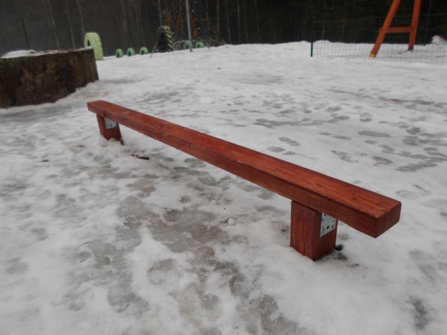 koka komplekss ,,Milzis”, divi līdzsvara baļķi un koka kaste (baseins), kas