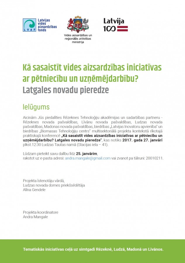 „Kā sasaistīt vides aizsardzības iniciatīvas ar pētniecību un uzņēmējdarbību? Latgales novadu pieredze"