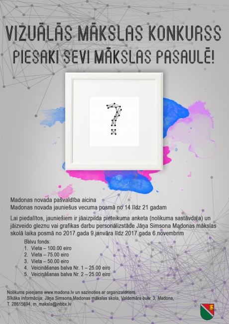 Organizators nodrošina izstādes iekārtošanu Jāņa Simsona Madonas mākslas skolā.