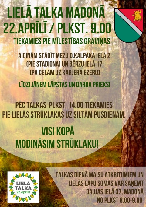 Lielā Talka notiek sestdien, 22.aprīlī no plkst. 9:00 – 15:00 vienlaicīgi visā Latvijā!