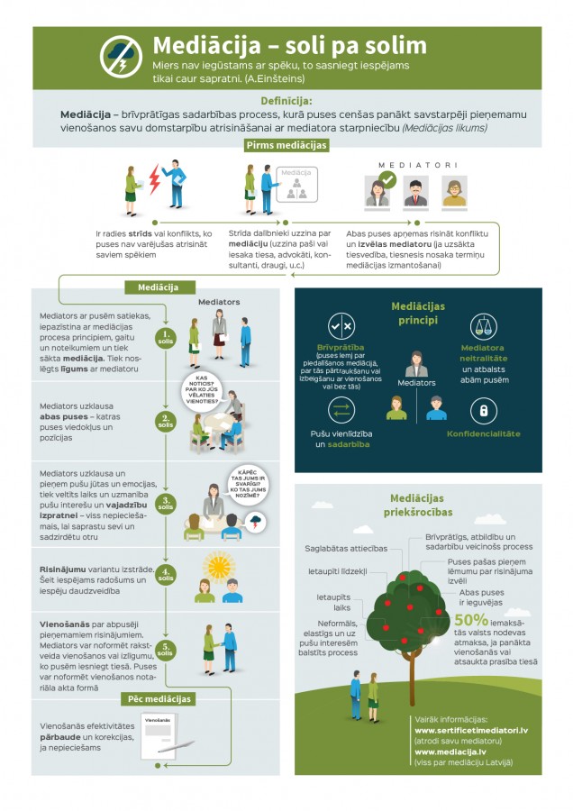"Mediācija ir Tava iespēja risināt domstarpības atbildīgi un cieņpilni."