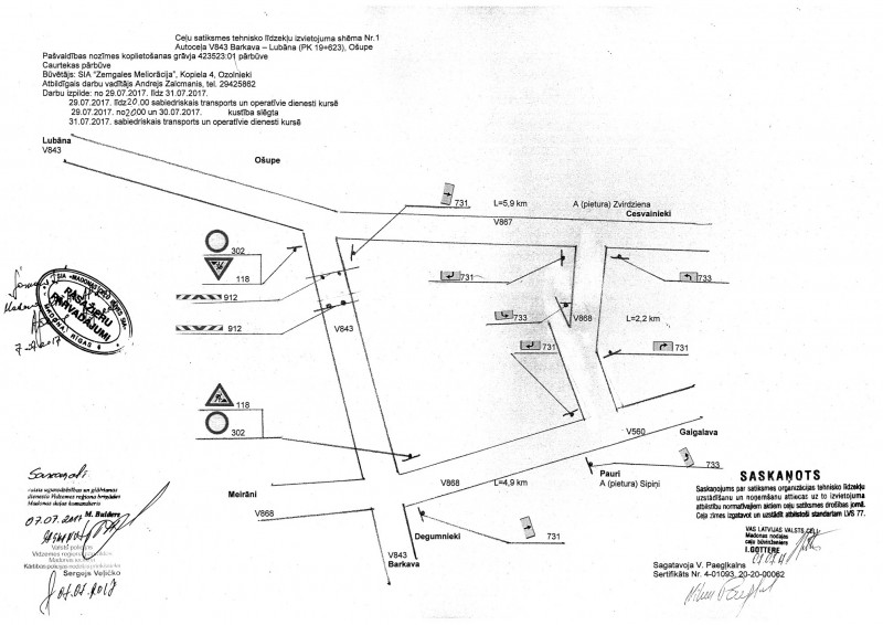 - no 29.07. – 31.07. uz laiku tiks slēgts autoceļa V843 Barkava –