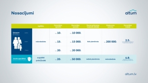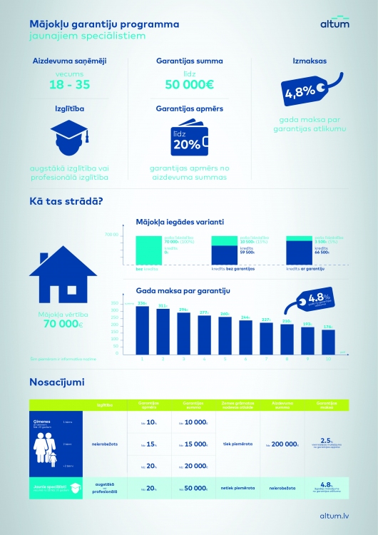 Garantijas ģimenēm ar bērniem līdz 23 gadu vecumam (ieskaitot) tiks izsniegtas uz līdzšinējiem nosacījumiem. Persona, kuras apgādībā ir viens bērns, var saņemt ALTUM garantiju 10% apmērā no aizdevuma summas (maksimālais apmērs 10 tūkstoši eiro), ar diviem bērniem – 15% apmērā (līdz 15 tūkstošiem eiro), ar trīs vai vairāk bērniem – 20% apmērā (līdz 20 tūkstošiem eiro)Par garantiju ir noteikta vienreizēja maksa 2,5% apmērā no garantijas summas.