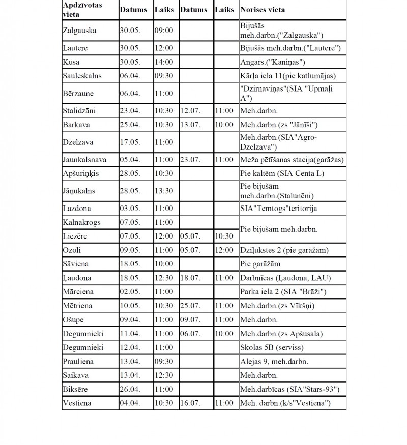 2018.gada traktortehnikas un tās piekabju ikgadējās valsts tehniskās apskates laiki un vietas Madonas novadā