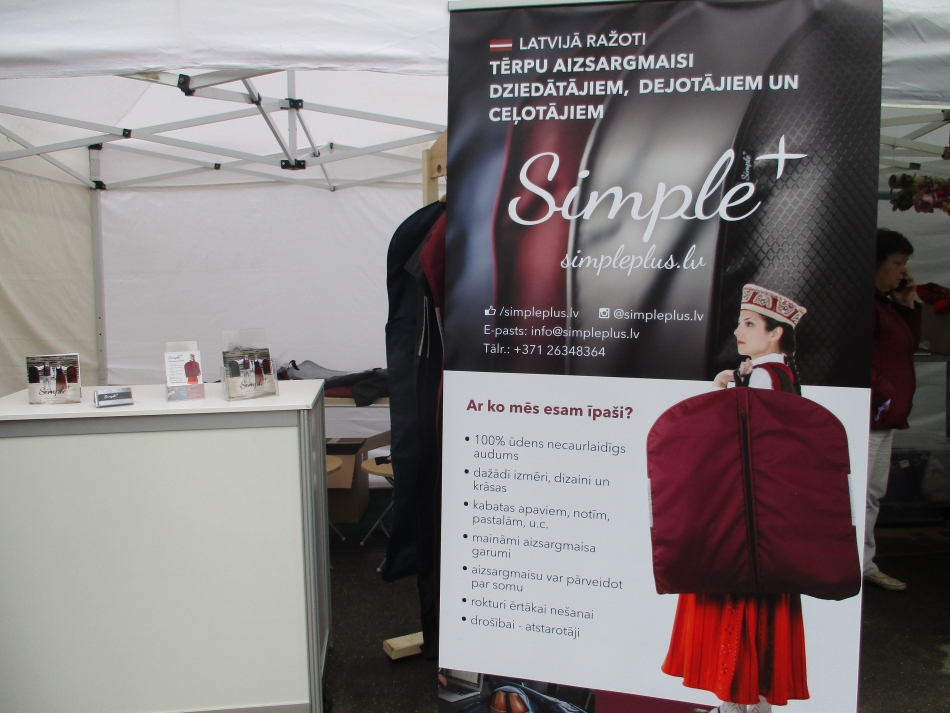 Par pārsteigumu ikvienam - Daugavas stadiona tirdziņā iespējams iegādāties vai pasūtīt arī tērpu aizsargmaisus dejotājiem, dziedātājiem, ceļotājiem. Īpašs lepmuns par to, ka šos maisus piedāvā