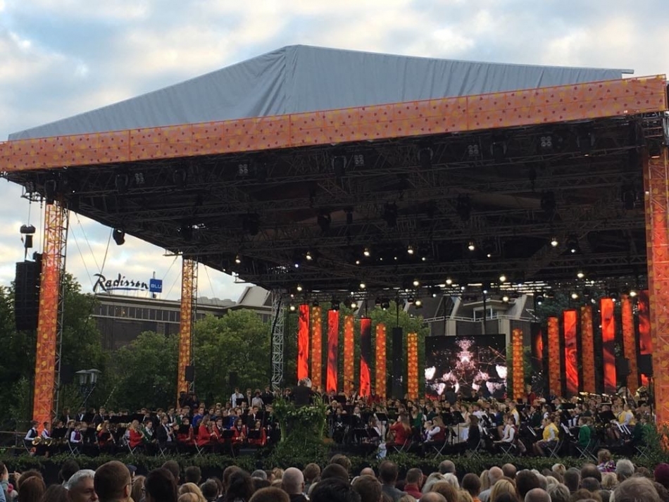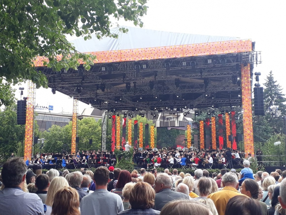 Plkst. 17.00 Esplanādē skanēs pūtēju orķestru Dižkoncerts. Jau kopš 2003. gada, kad tika iedibināta pūtēju orķestru Dižkoncerta tradīcija, šis notikums ikreiz pārsteidz ar jauniem izteiksmes līdzekļiem un kvalitatīvām inovācijām. Šoreiz Dižkoncerts notiks Esplanādē – vietā, kur 20. gadsimta sākumā izskanējuši vairāki Dziesmu svētku koncerti.