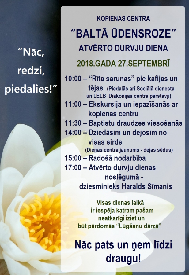Kopienas centra "Baltā ūdensroze" atvērto durvju dienas