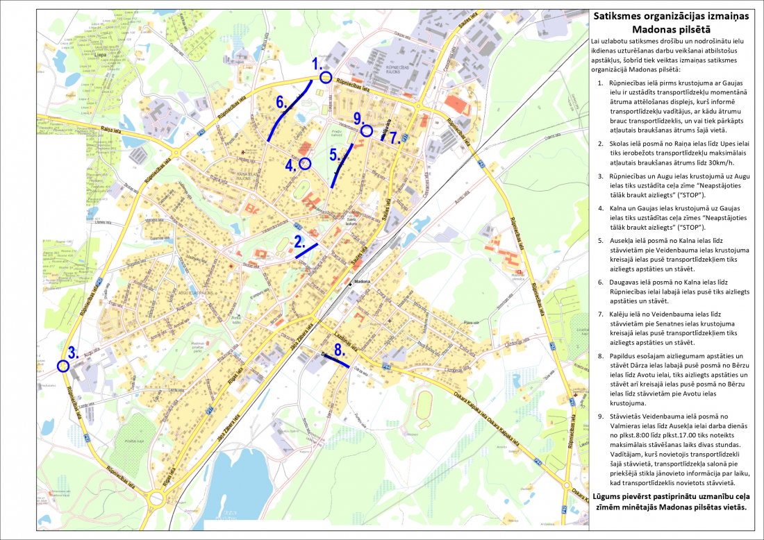 Lūgums pievērst pastiprinātu uzmanību ceļa zīmēm minētajās Madonas pilsētas vietās.