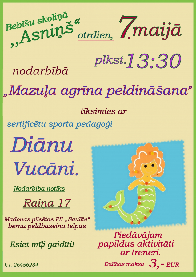 Piedāvājam papildus aktivitāti ar treneres līdzdalību.