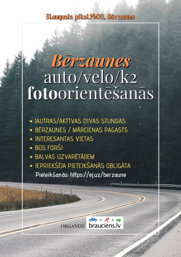 31.augustā, Bērzaunes pagasta Sporta svētku ietvaros, sadarbībā ar Brauciens.lv norisināsies fotoorientēšanās sacensības. Interesentiem būs iespēja doties kādā no trīs īpaši sagatavotiem maršrutiem: