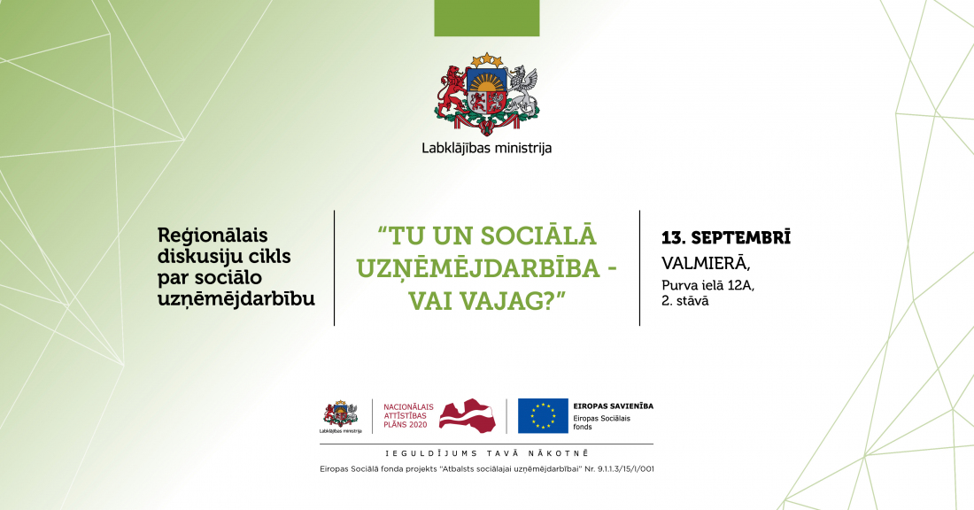 Pasākums norisināsies no plkst.11:00 līdz 13:30 Purva ielā 12A, 2.stāvā. Dalība diskusijā ir bez maksas, taču vietu skaits ir ierobežots. Pieteikties uz diskusiju var, līdz 10. septembrim aizpildot tiešsaistes anketu. Pieteikuma anketa un programma pieejama pieejama http://ejuz.lv/ub8 un Labklājības ministrijas sociālā tīkla Facebook lapā https://www.facebook.com/labklajibasministrija/, sadaļā “Pasākumi”. Papildu informācija: Līga Ivanova, liga@sua.lv, 26464686.