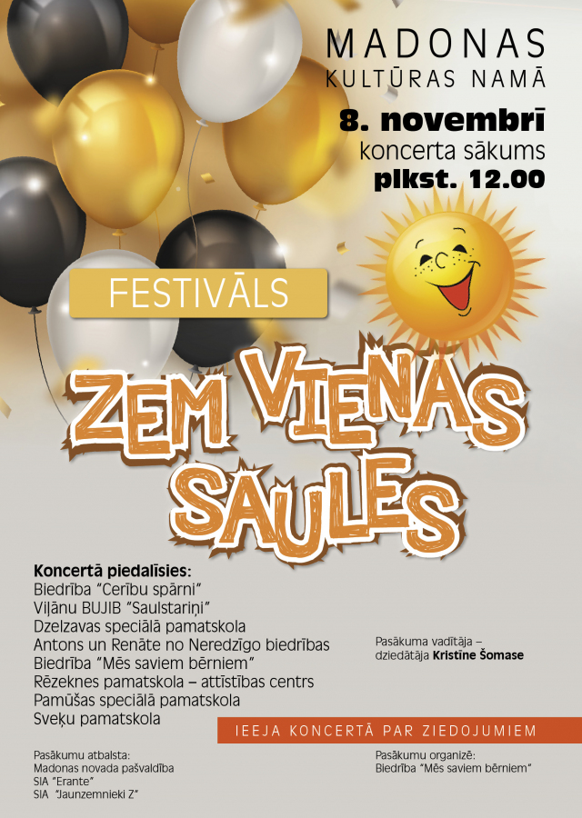 Ikgadējais festivāls - koncerts "Zem vienas saules" Madonas pilsētas kultūras namā 8.novembrī plkst.12:00.