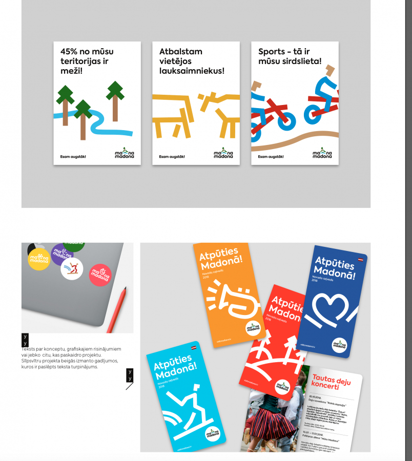 Jāatzīst, ka Madonas novada pašvaldība pirmo reizi pēdējo gadu griezumā š.g. budžetā ieplānoja papildus finanšu līdzekļus atsevišķām mārketinga aktivitātēm, tostarp, Madonas novada vizuālās identitātes (kas ietver zīmola stratēģiju, logotipu, saukli, grafisko identitāti jeb zīmola vadlīnijas – logo pielietojumu, reprezentatīvo materiālu un suvenīru līniju, reklāmas materiālu izstrādi, mājaslapas dizainisko piedāvājumu, iespējamā vides objekta dizainu u.tml.) un vides objekta izstrādei.