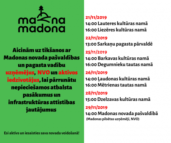Plānojot 2020.gada budžetu, t.sk. atbalsta pasākumus un investīcijas, vēlamies uzklausīt uzņēmēju viedokli par uzņēmējdarbības vidi pagastos un novadā kopumā un ierosinājumus, kas varētu veicināt novada uzņēmumu veiksmīgu un ilgtspējīgu attīstību Madonas novadā.
