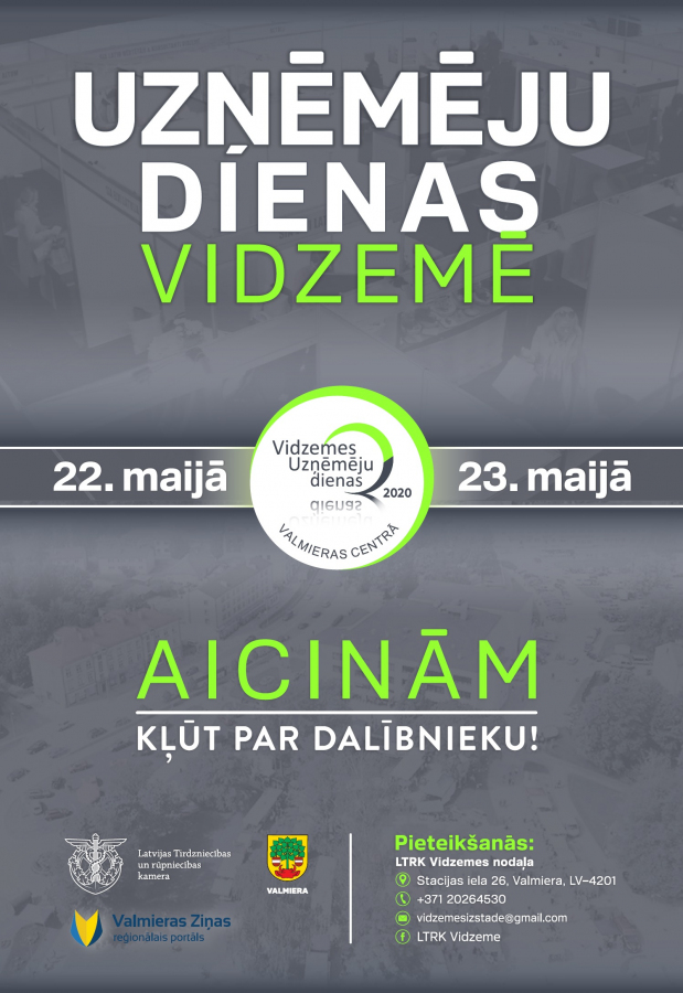 „Vidzemes Uzņēmēju dienas 2020” organizē LTRK Vidzemes reģionālā nodaļa sadarbībā ar Valmieras pilsētas pašvaldību.