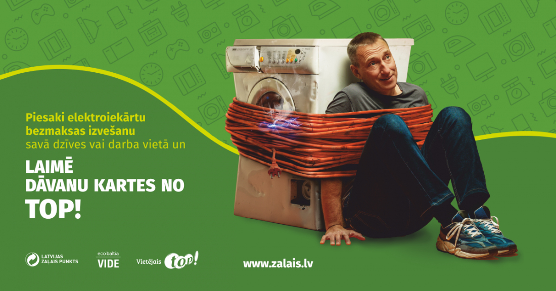 Aicinām ievērot, ka akcijā var nodot tikai nolietotās elektropreces un baterijas un netiks savākti citi atkritumu veidi, piemēram, mēbeles, būvniecības pārpalikumi, piemēram, logi, durvis, podi u.c.