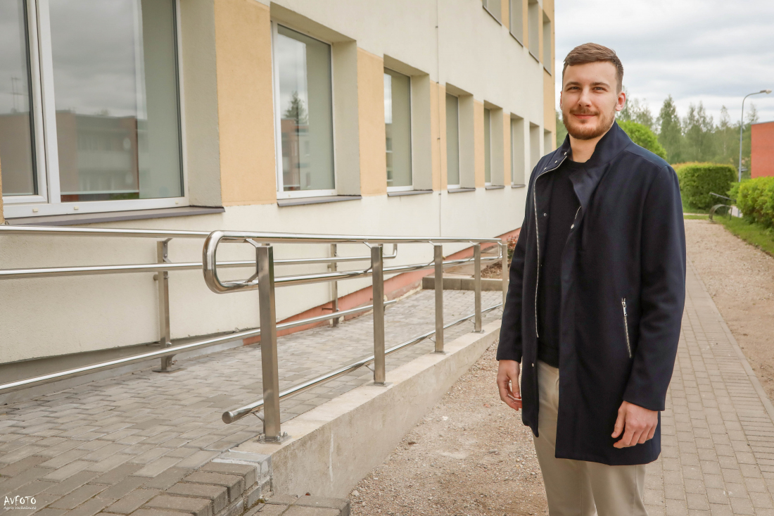 tā iekštelpām pie ēkas galvenās ieejas ir izbūvēts panduss, savukārt, lai no 1.
