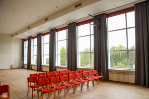 iegādāts arī aprīkojums – krēsli, aizkari un žalūzijas.
