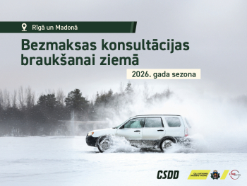 Lai uzlabotu autovadītāju prasmes vadīt auto ziemas apstākļos, VAS “Ceļu satiksmes drošības direkcija” (CSDD) sadarbībā ar Latvijas transportlīdzekļu apdrošinātāju biroju (LTAB) autovadītājiem piedāvā bezmaksas drošas ziemas braukšanas konsultācijas. Šogad šīs sezonas bezmaksas ziemas braukšanas konsultācijas tiks noslēgtas ar apmācībām – Liepājā, Madonā un Talsos.