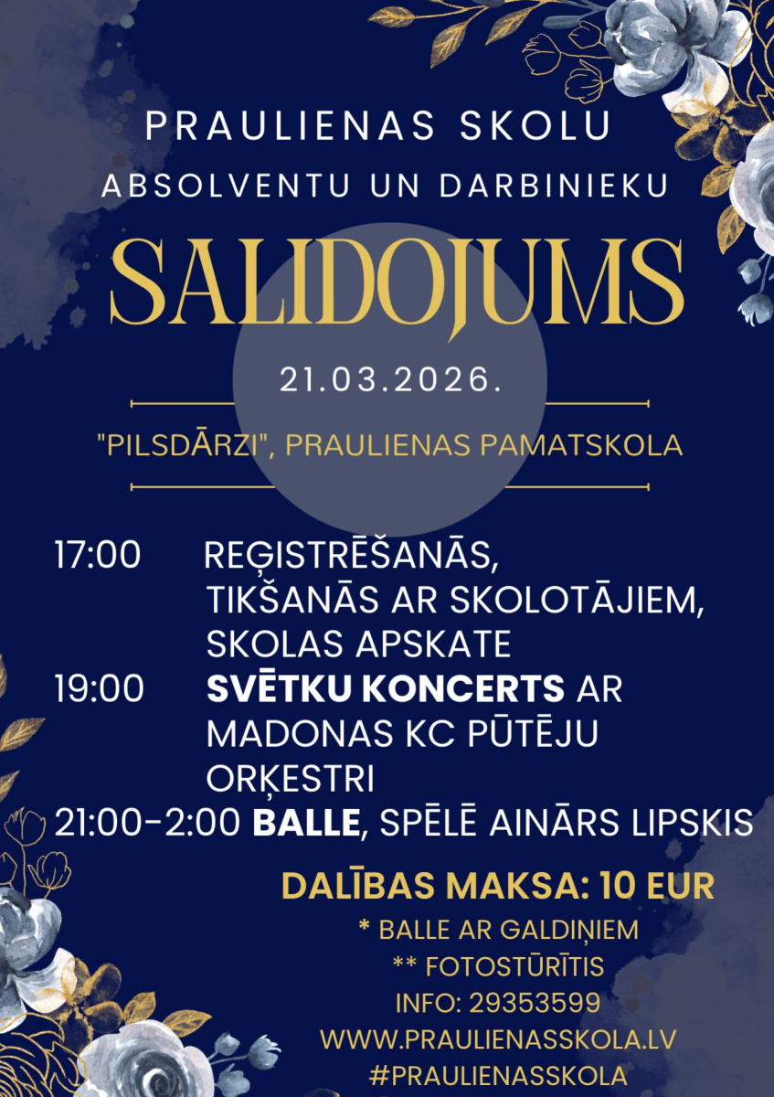 Salidojuma ieejas biļetes iespējams iegādāties pasākuma norises vietā Praulienas pamatskolā vai Praulienas pagastā (Antra, 26322797).