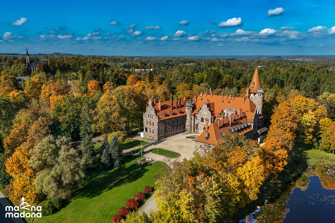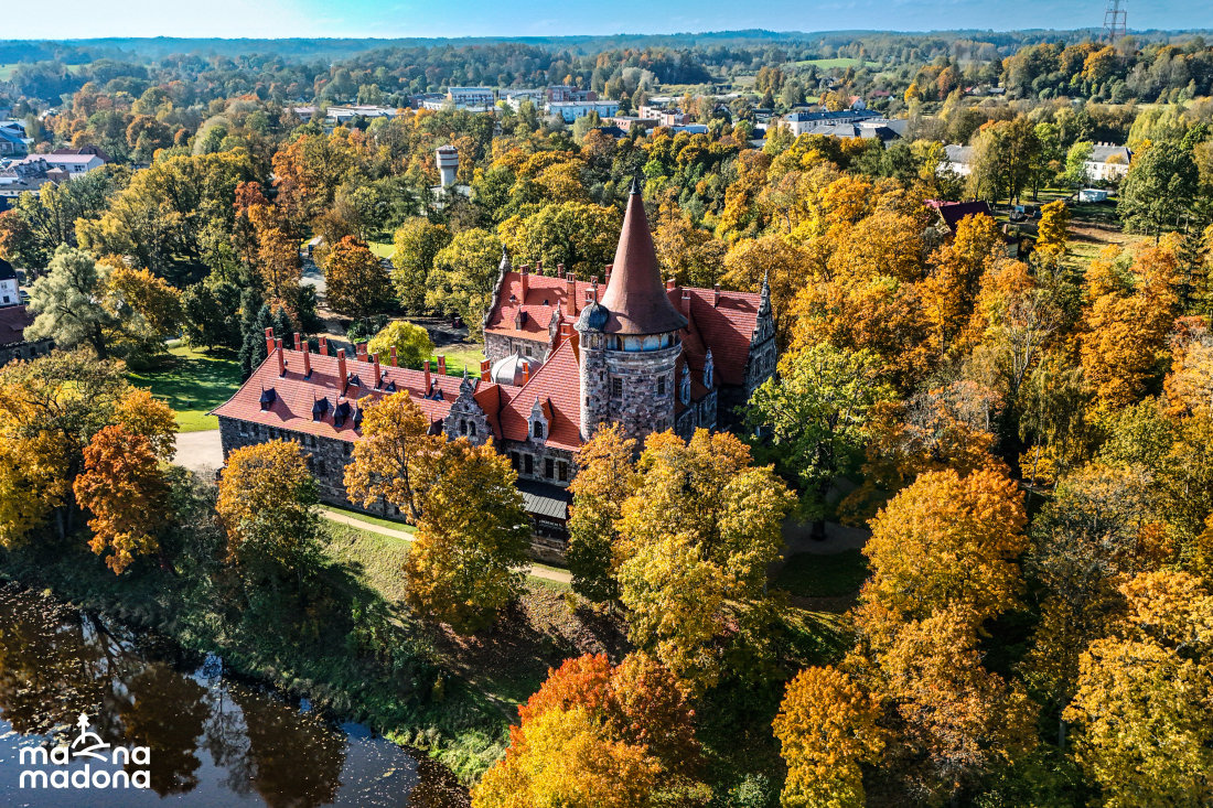Cesvaines pils rudenī un miglas rīts Madonā