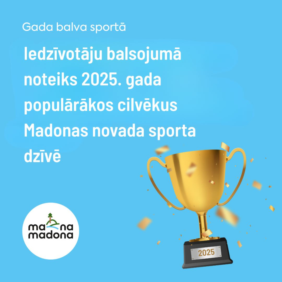 Madonas novada pašvaldība rīko iedzīvotāju balsojumu, lai noteiktu populārāko 2025. gada sportistu, sportisti, treneri Madonas novadā sportā. “Gada balva sportā 2025” balsojums norisināsies no 2026. gada 10. marta plkst. 10:00 līdz 2026. gada 18. martam plkst:16:00 portālā www.madona.lv